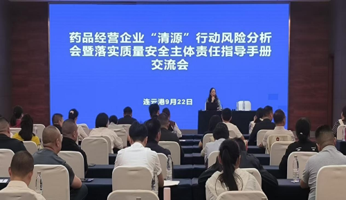在强化日常监管的基础上,9月22日,连云港检查分局组织召开了药品经营“清源”行动风险分析会暨落实质量安全主体责任指导手册交流会。全市药品批发企业及零售连锁总部企业负责人、质量负责人、质量机构负责人等100余人参加了本次会议。